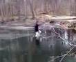Description: dumb ass falls through ice in a mini river |